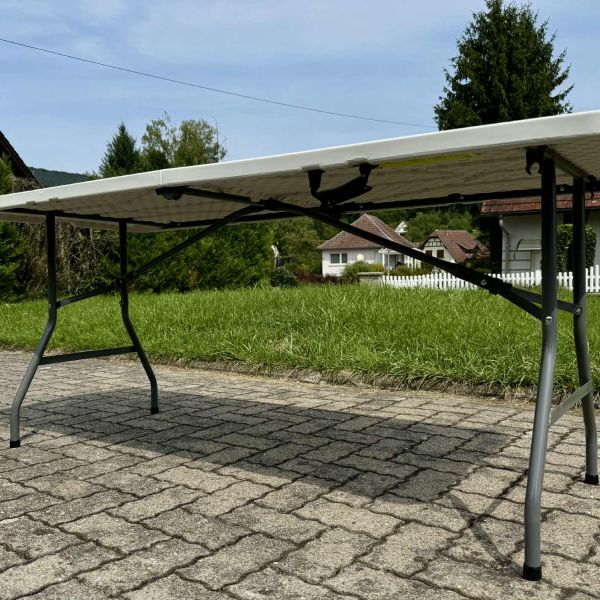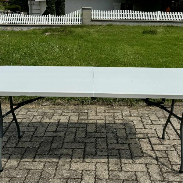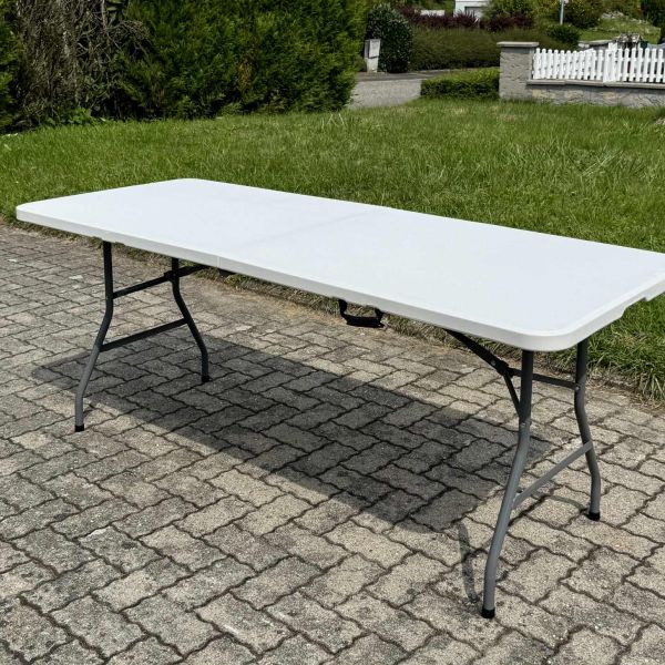 Table pliante polyéthylène pour 6 à 8 personnes.