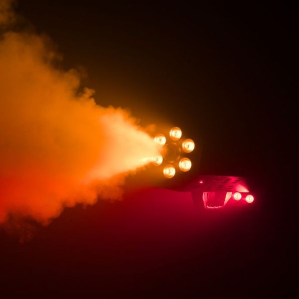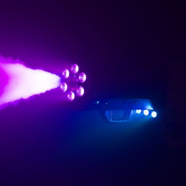 Parfait pour les soirées, shows DJ ou événements festifs, elle projette des jets puissants de fumée jusqu’à 10 mètres, pour un débit de 700 m³/min. L’effet est renforcé par 6 LED RGBA positionnées autour de la buse, ajoutant des couleurs intenses et synchronisées à chaque salve. Ambiance garantie dès les premières secondes de mise en scène !